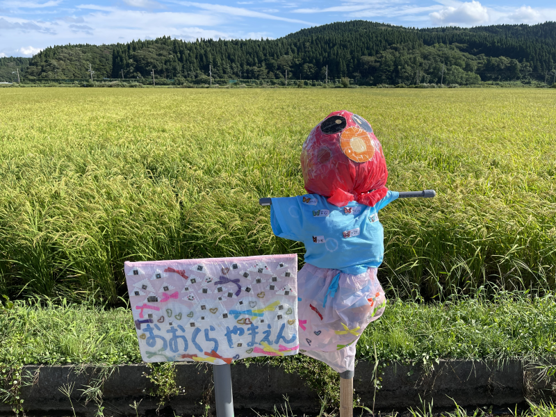 秋田から、田んぼでがんばっているかかしとの生中継!