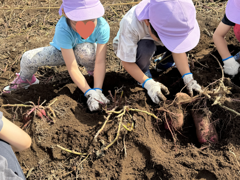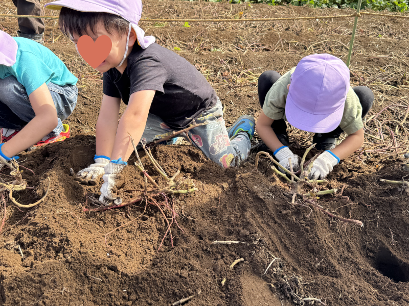 一面、お芋畑を見ると子どもたちは「ここにあるのかな?」と、わくわくが止まりません。