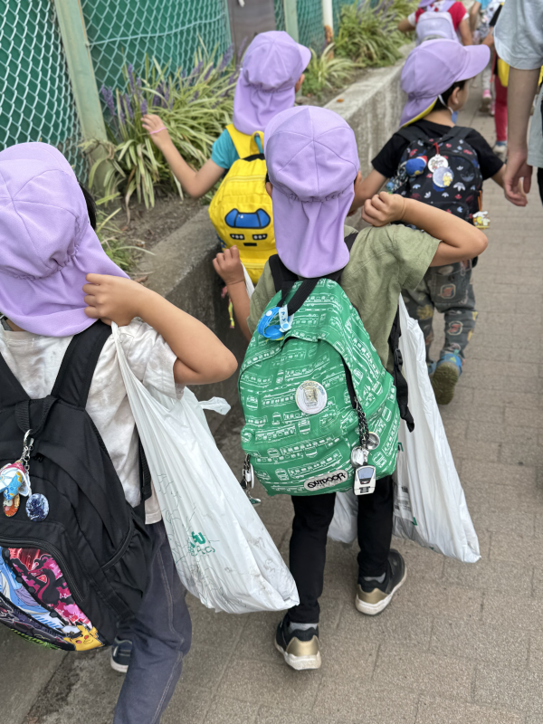 帰り道、みんなのリュックに入っていないサツマイモを集めて、大きな袋に入れると