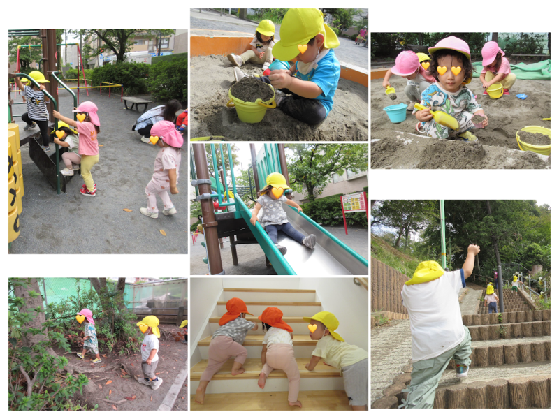 秋がやってきて、外遊びも盛んになり、身体を動かしてダイナミックに遊んでいます。