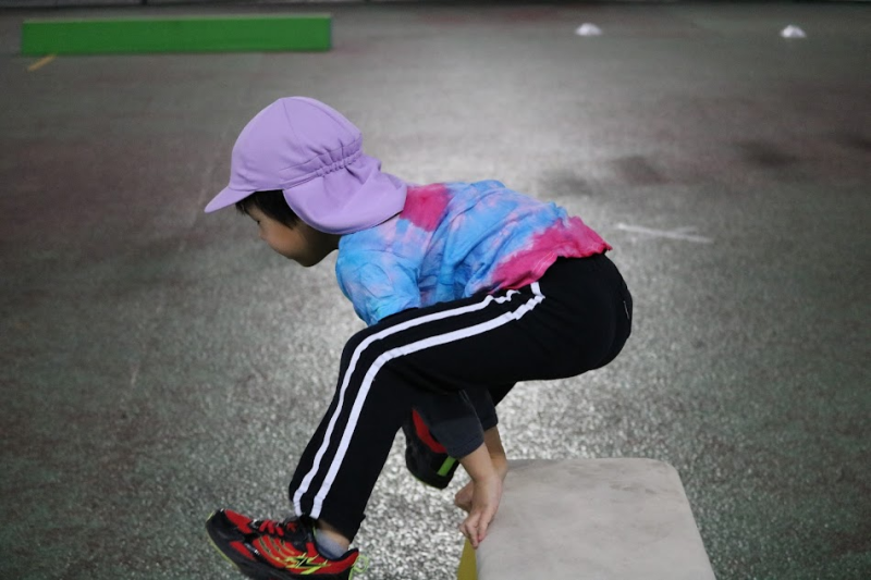 平均台にも挑戦です。ダイナミックに進む子、慎重に一歩ずつ進む子といろいろな姿が見られました。