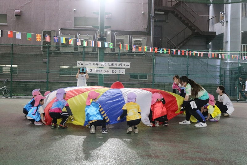 4.5歳児クラスの子ども達は、パラバルーンを行いました。運動会に向け、どうしたら技が成功するのかを皆で考えたり、一生懸命取り組んだ成果が出て、とても上手に出来ました!