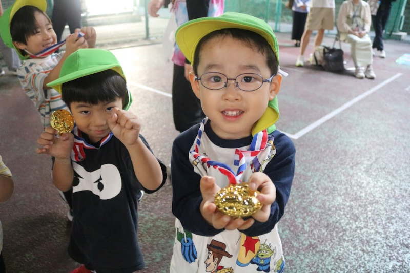 《運動会だから練習をする》のではなく、毎日の《遊び》の中で楽しみながら取り組んできたことが、運動会で披露をした競技や表現になりました。運動会当日は、保護者の皆様からの温かい声援と拍手に自信がつき、ひと回りもふた回りも成長をしたと思います。幼児クラスの子ども達は、みんなで力を合わせてひとつのものを作り上げる経験も出来ました。たくさん体を動かし、すてきな1日となりました。
