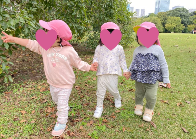 日々の活動では、散歩に出掛けることが多く、自然物に触れる機会もたくさんあります。自然のある公園が多くある地域なので、秋の遠足では新宿御苑に出向くに行くこともあります。