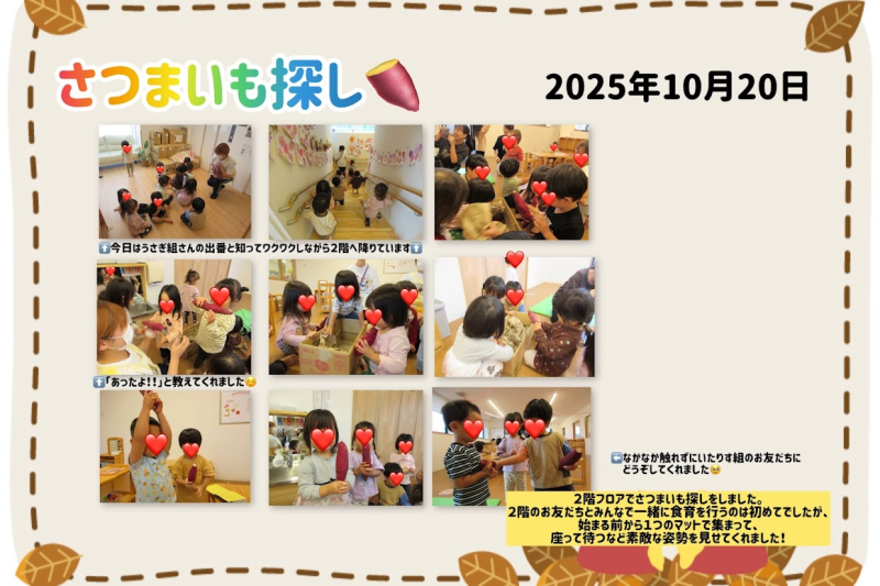 1歳児と2歳児のこども達が参加して、土に見立てた箱の中から、