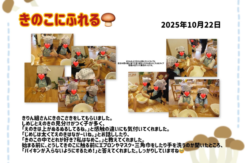 保育室では、キノコの栽培もはじめました。