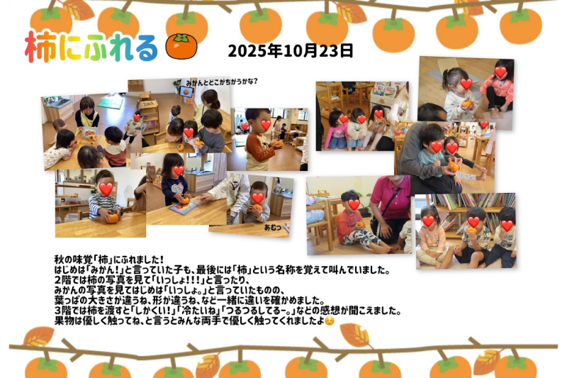 また、全園児に向けて、柿にふれるという食育。