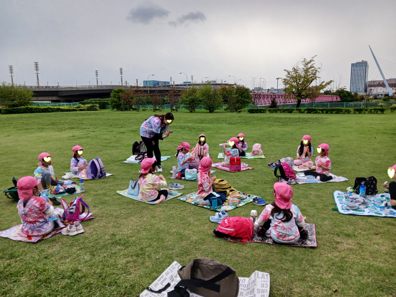 広ーい芝生でおいしくいただきました。飛行機も見えて、気持ちよかったね☆