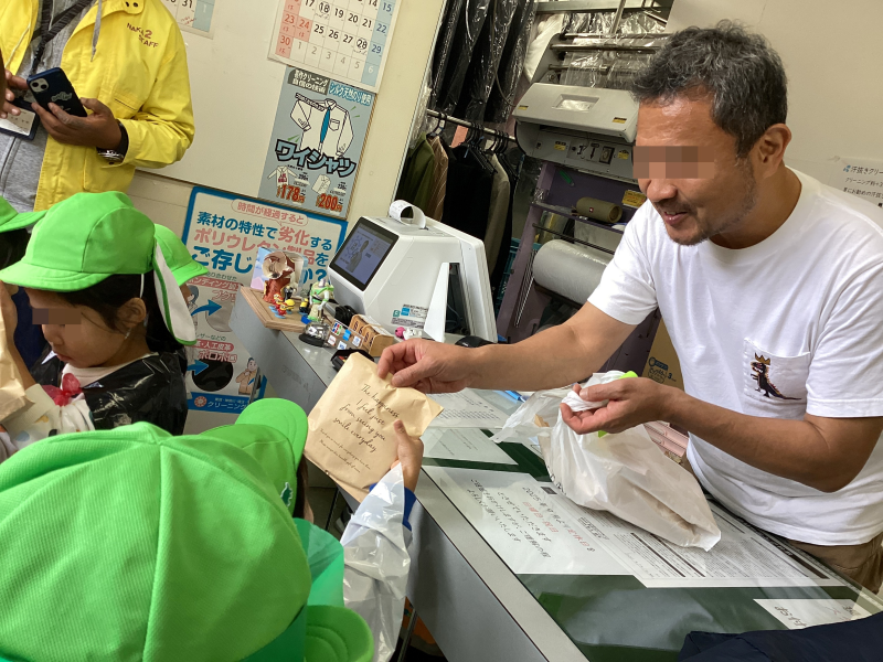 ↑クリーニング屋さんにも行きました。いつも朝早くから元気なおじさん☆