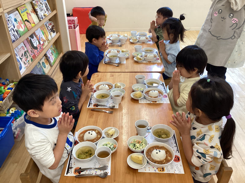 ↑帰ってからは、おいしい給食。この日はハロウィン特別メニュー☆
