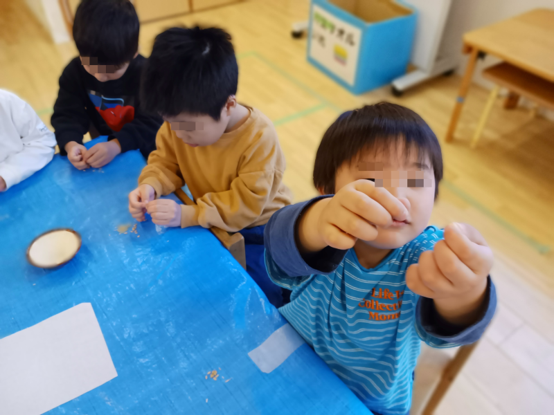 乾燥させたら、給食のごはんに一緒に混ぜて炊いてもらいます。楽しみだね☆