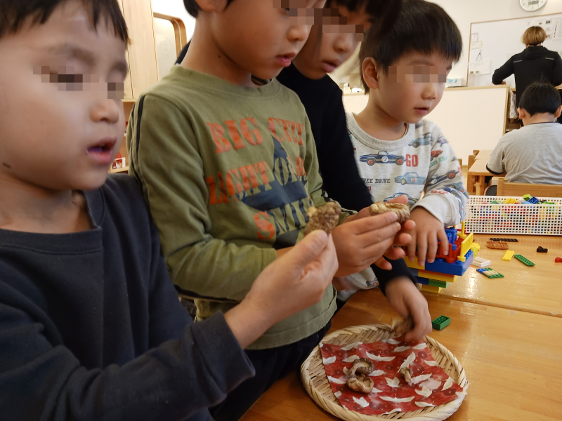 3,4,5歳児クラスのおともだちが、異年齢活動でシイタケ食育を楽しみますよ!
