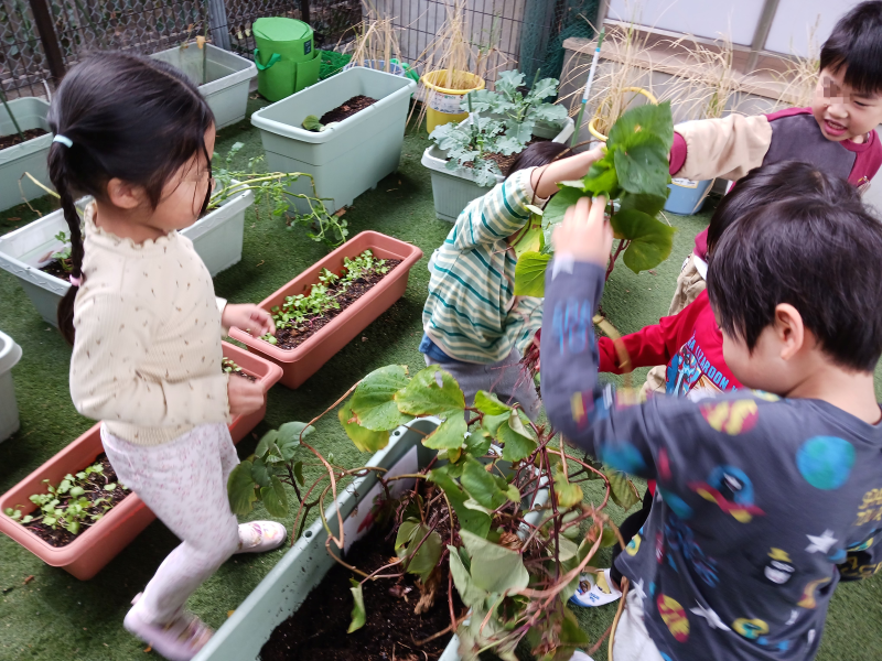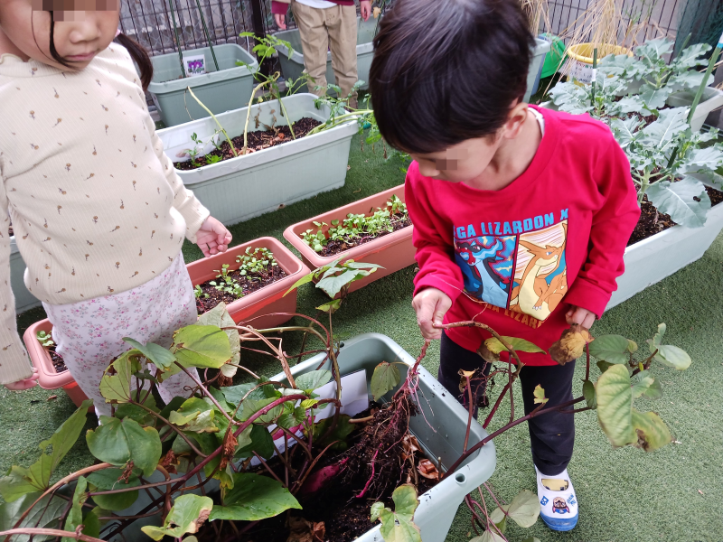 この日、夏に苗植えしたサツマイモを3歳児クラスのおともだちが掘りました☆