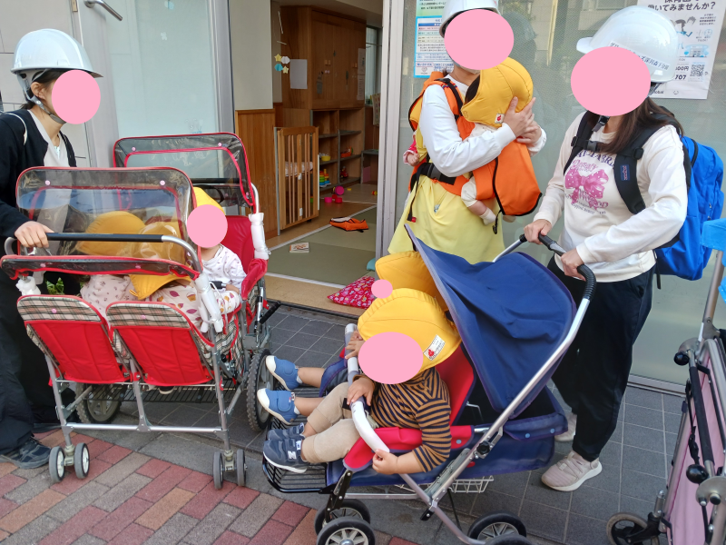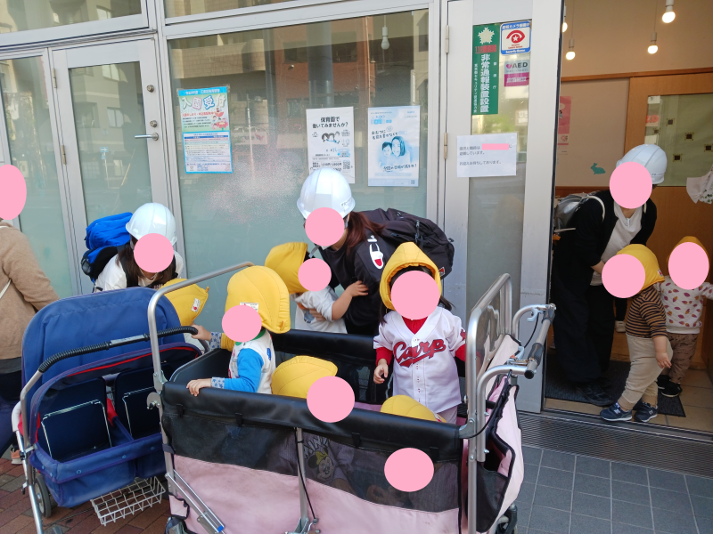 いつもと違う雰囲気でしたが、子ども達は静かに保育者の話を聞きながら避難していました。