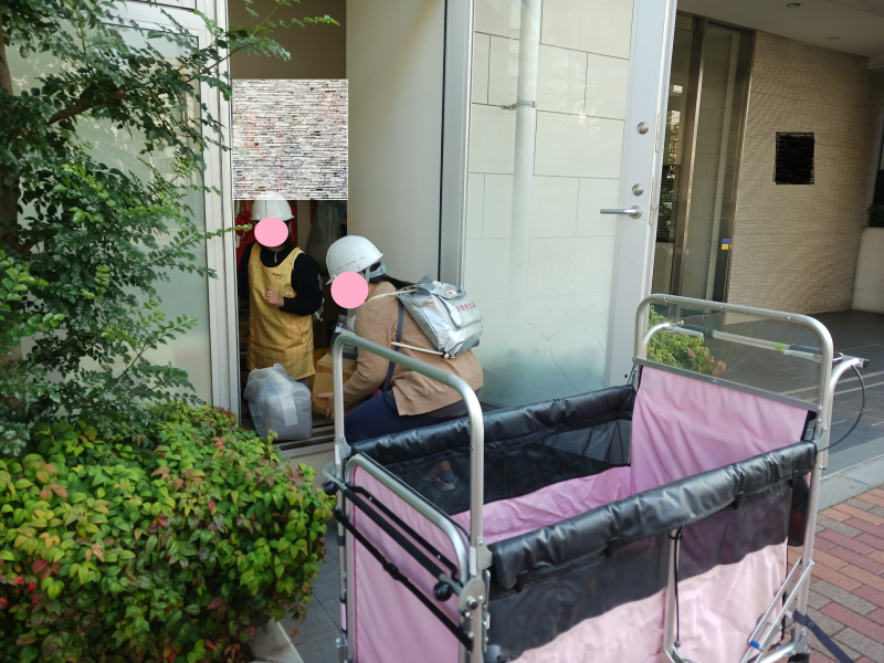 子ども達の避難と同時に、園にある備蓄品を持ち出して近隣の施設に避難します。