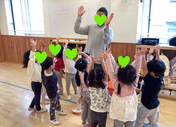 愛住町園では3歳児以上のクラスで外部の講師の方の体操(月に1度)、英語(2か月に1度)取り入れています。