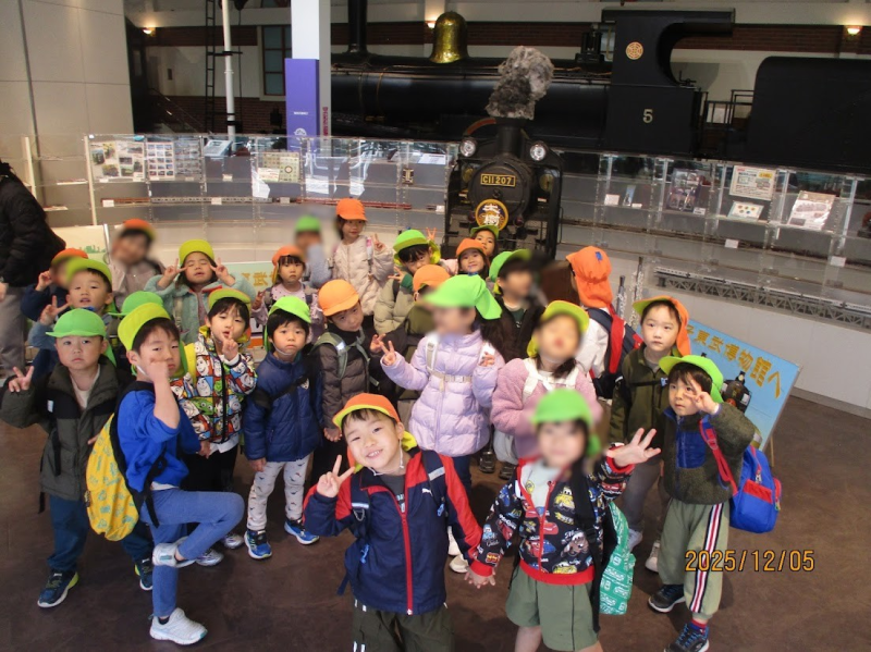 12月15日は4歳児クラス(つき組)と5歳児クラス(ほし組)で東武博物館に遠足に行きました。