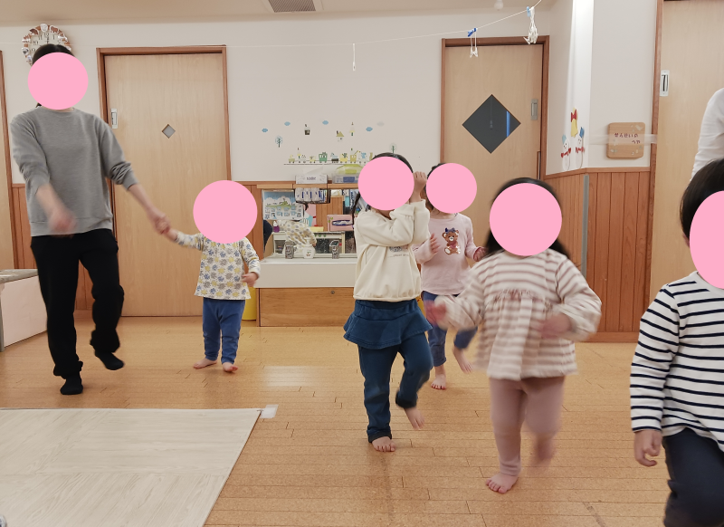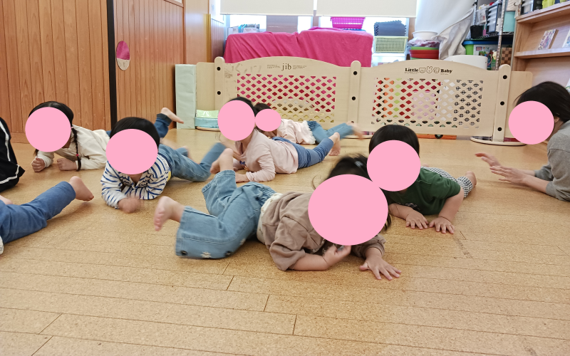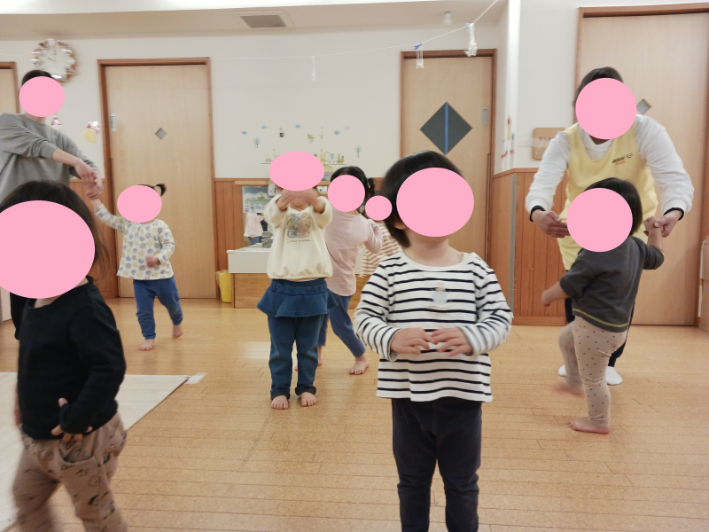 ダンスをしたり、音楽に合わせてカメやワニなどの動物やどんぐりになりきって遊びましたよ。
