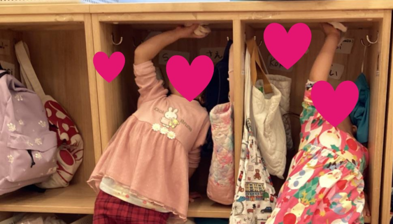 コミュニティ(幼児クラスは)一人ひとり雑巾をもって分担してお掃除しました。