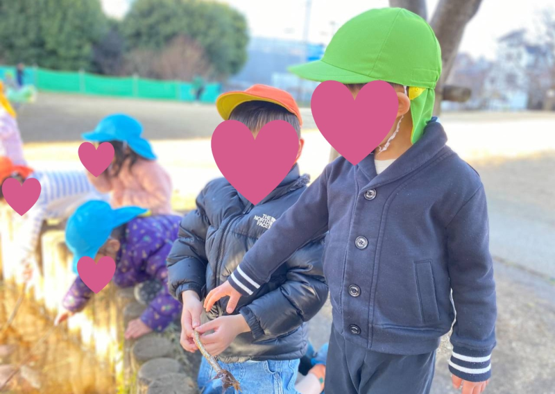 日々の活動では、散歩に出掛けることが多く、自然物に触れる機会もたくさんあります。自然のある公園が多くある地域なので、秋の遠足では新宿御苑に出向くに行くこともあります。