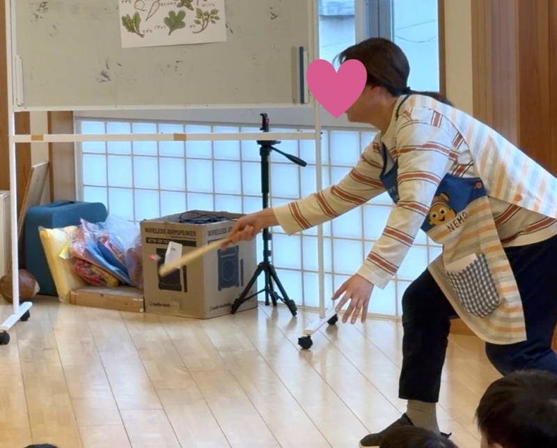 【けん玉】ワタクシ園長はけん玉に挑戦!行事ですることが決まってから、マイけん玉を買ってお正月のお休みに練習しました。