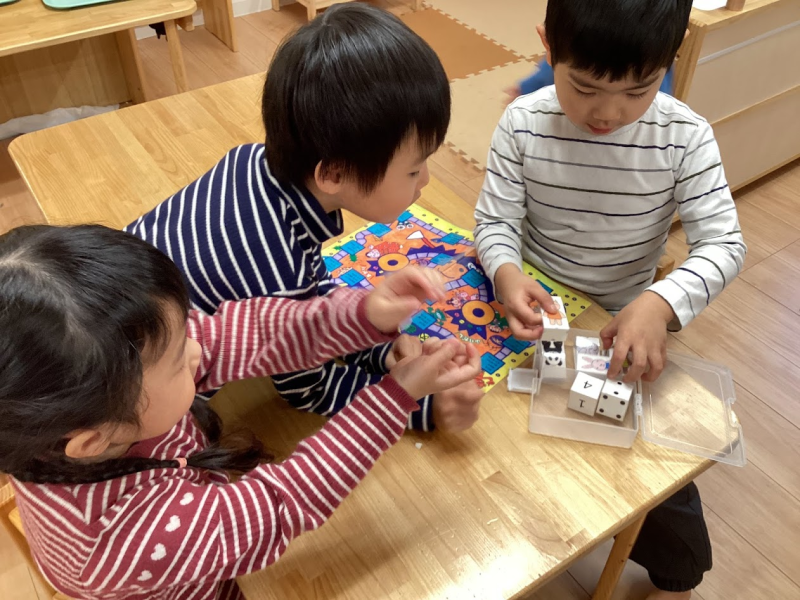 【すごろく】子ども達同士でルールを確認し合いながら遊んでいました。