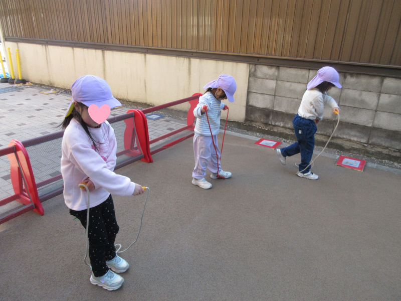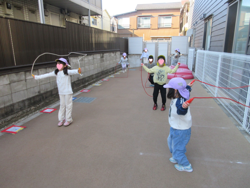 手をクロスしたまま縄を回すのが難しく、苦戦していますが、諦めずに挑戦しています。