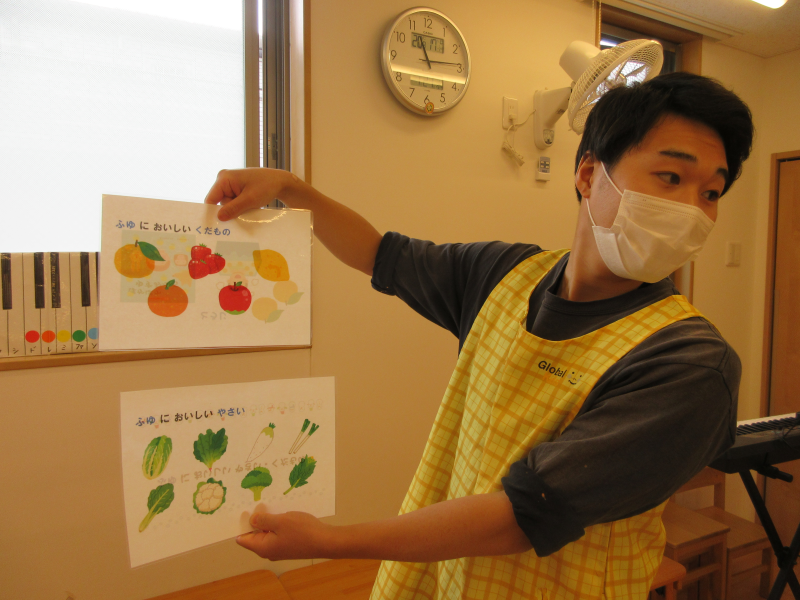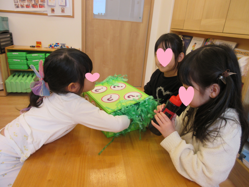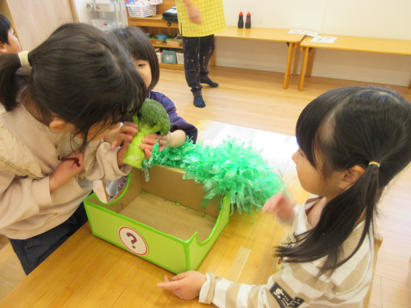 食育の一環として、季節ごとに旬の食材を入れた「はてなBOX」をしています。