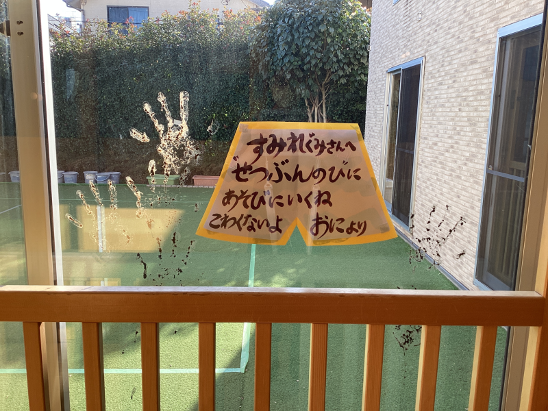 今年は幼児クラスには鬼の手形とともに、鬼から手紙が届きました。ドキドキする様子やあっけらかんとしている様子など様々でしたが節分を心待ちにして過ごすきっかけとなりました。当日までは4歳児が柊鰯の買い出しに行ったり、節分や立春や大豆について話を聞いたりしました。