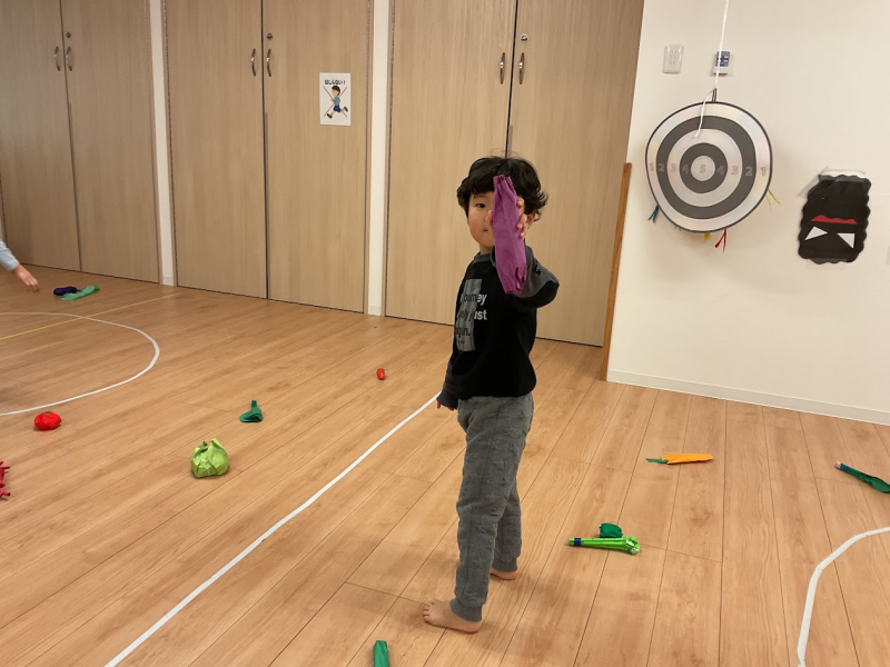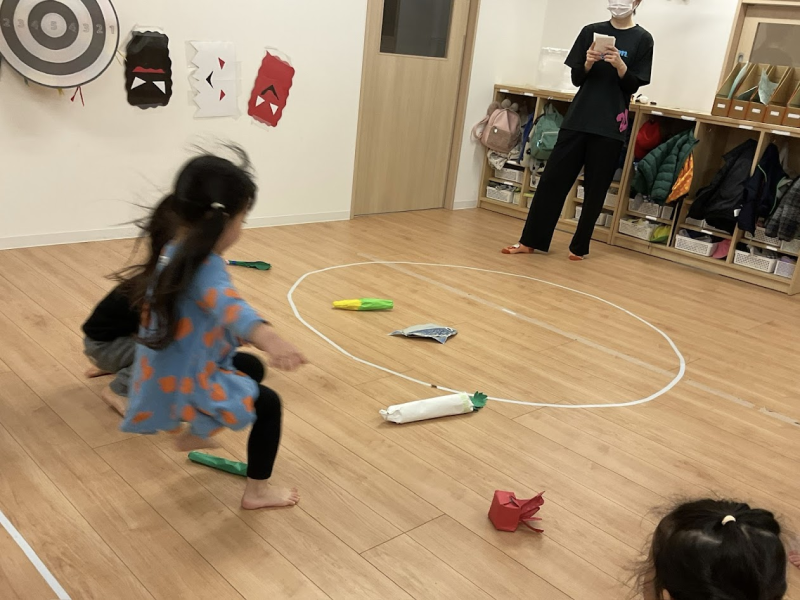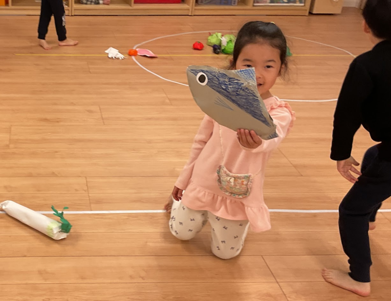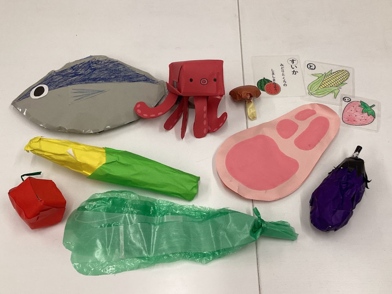 幼児クラスの子ども達が食材をテーマにした立体かるたで遊びました。