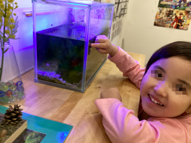 ↑『さぁ、ついでにメダカのエサやりもお願い~!』
