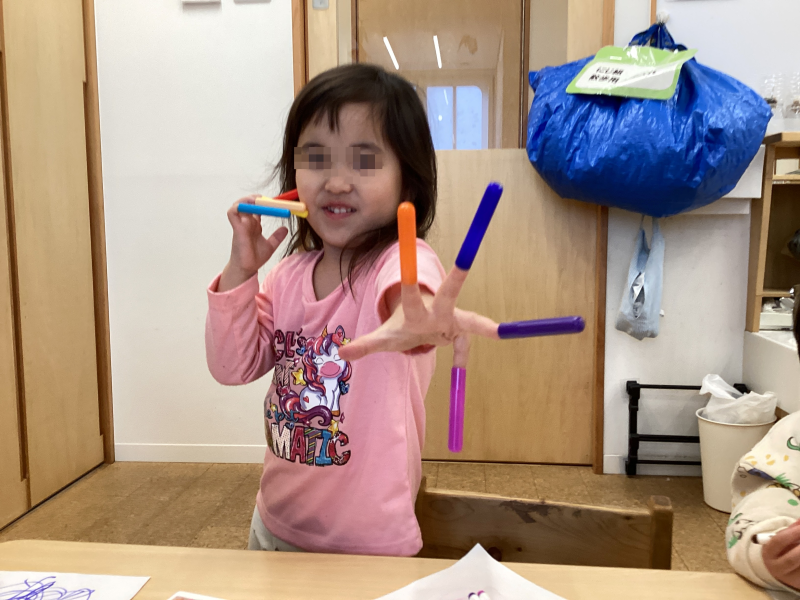 この日、2歳児クラスでペンでお絵描きを楽しんでいました。