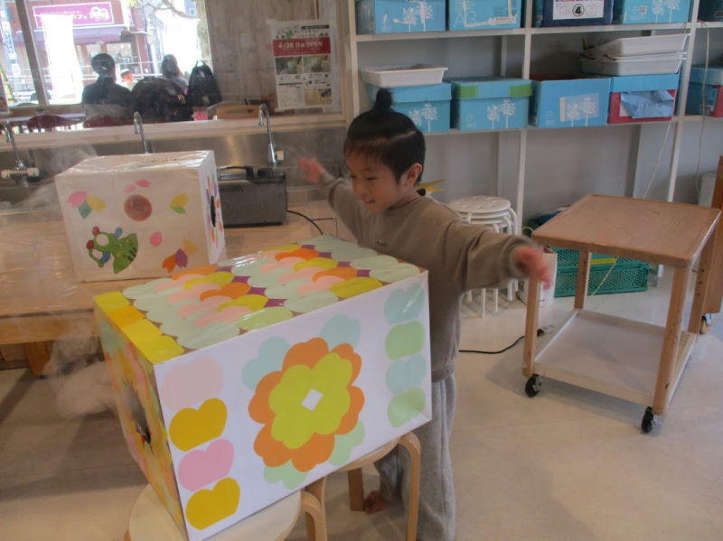 サイエンスショーでは、空気砲など空気にまつわる実験を見学しました。目に見えない空気を不思議に驚きながら、「なんで?」「すごい!」と興味津々な様子でした。