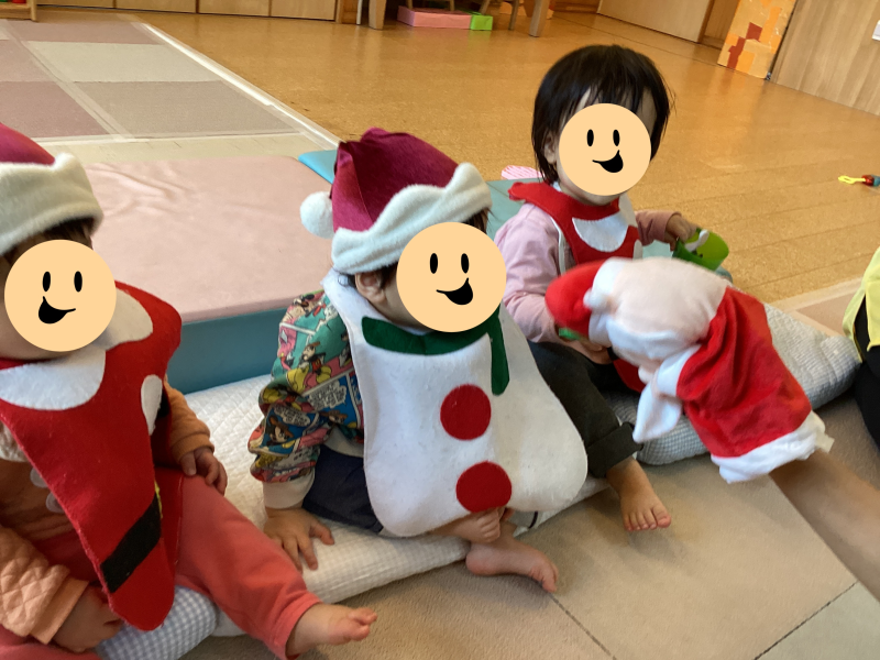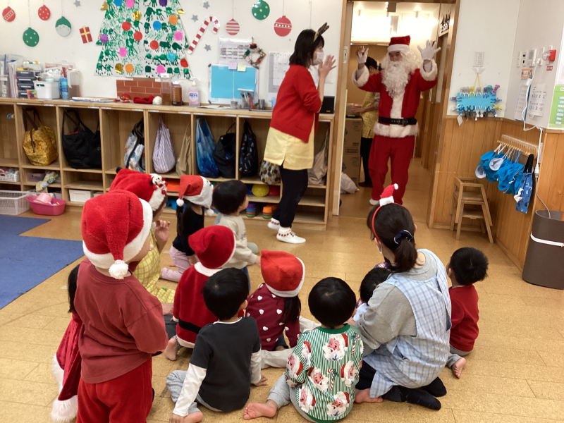 王子園にもサンタさんが来てプレゼントをくれました!子どもたちは大喜びで、一緒に歌を歌ったり、踊ったりしました♪