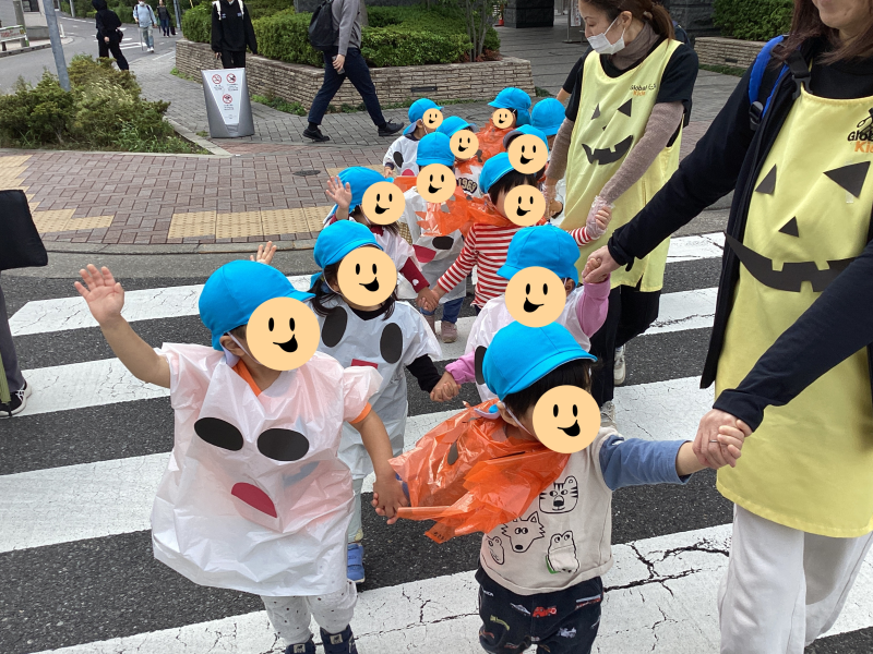 ハロウィンの装いでお散歩へ♪「トリックオアトリート!」と元気いっぱいの声が園内に響いていました!