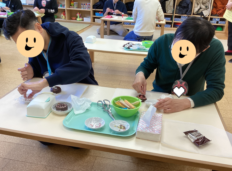 恒例のメッセージカード作りに加え、今年はデコチョコパイ作りもしました♪奥様への感謝の気持ちをカードとチョコパイにこめて・・お父さんたちのセンスが光ります☆