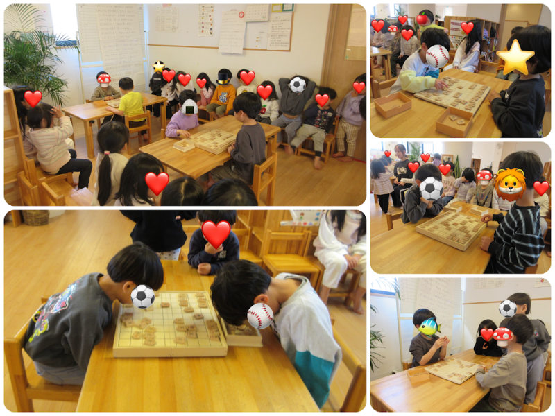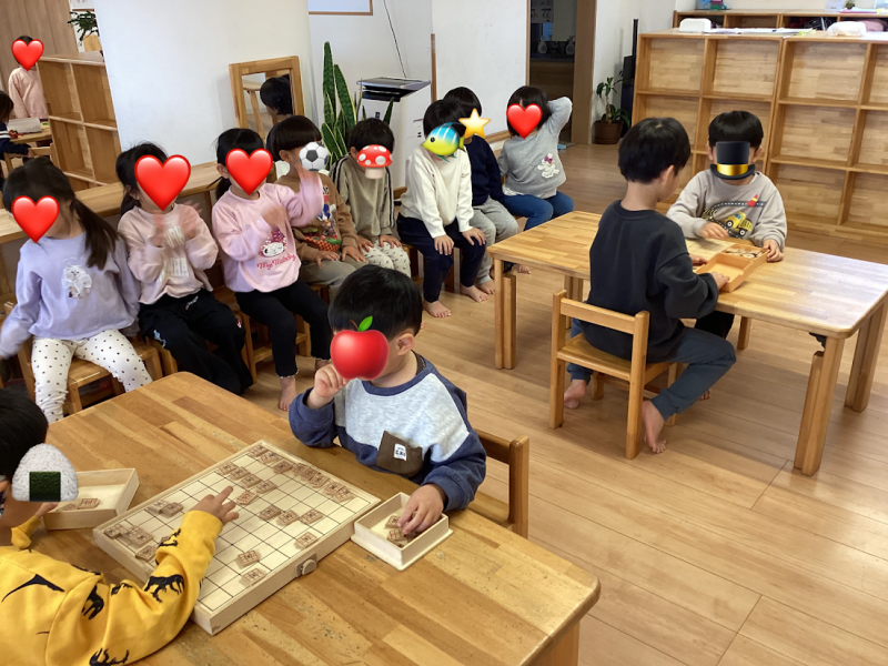 年長、年中の男の子たちが毎日のように将棋に夢中になって遊ぶ姿が見られます。