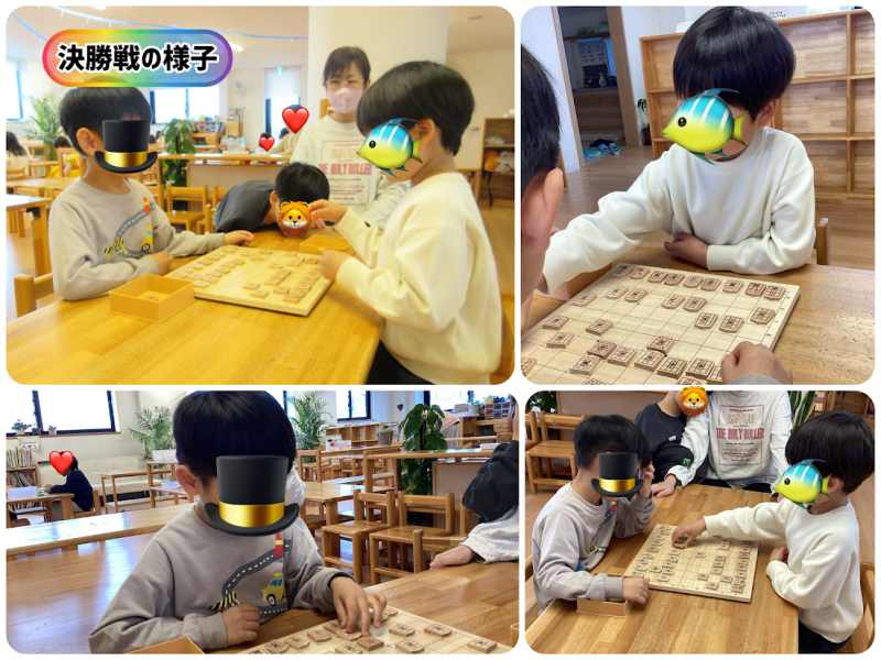第一回はハットのスタンプの子が優勝。園でも一番の腕前の持ち主で、将棋プレイヤーたちから憧れられています。