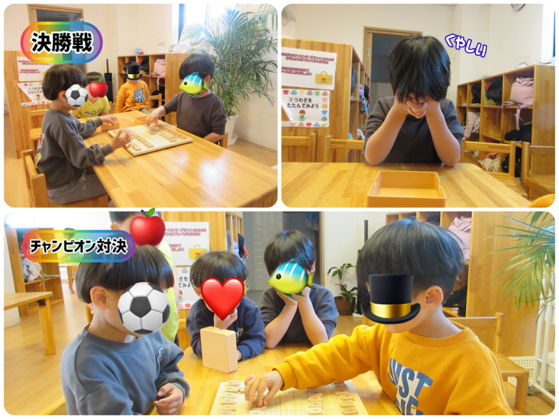 負けて悔しそうにしているお友だちに「また明日もやろう」と優しく声をかける子もいて、保育者も嬉しい気持ちになりました。