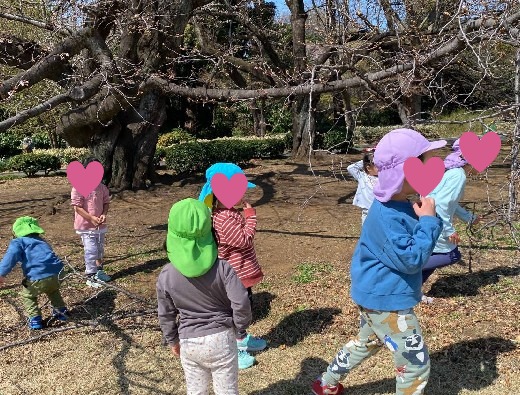 日々の活動では、散歩に出掛けることが多く、自然物に触れる機会もたくさんあります。自然のある公園が多くある地域なので、秋の遠足では新宿御苑に出向くに行くこともあります。