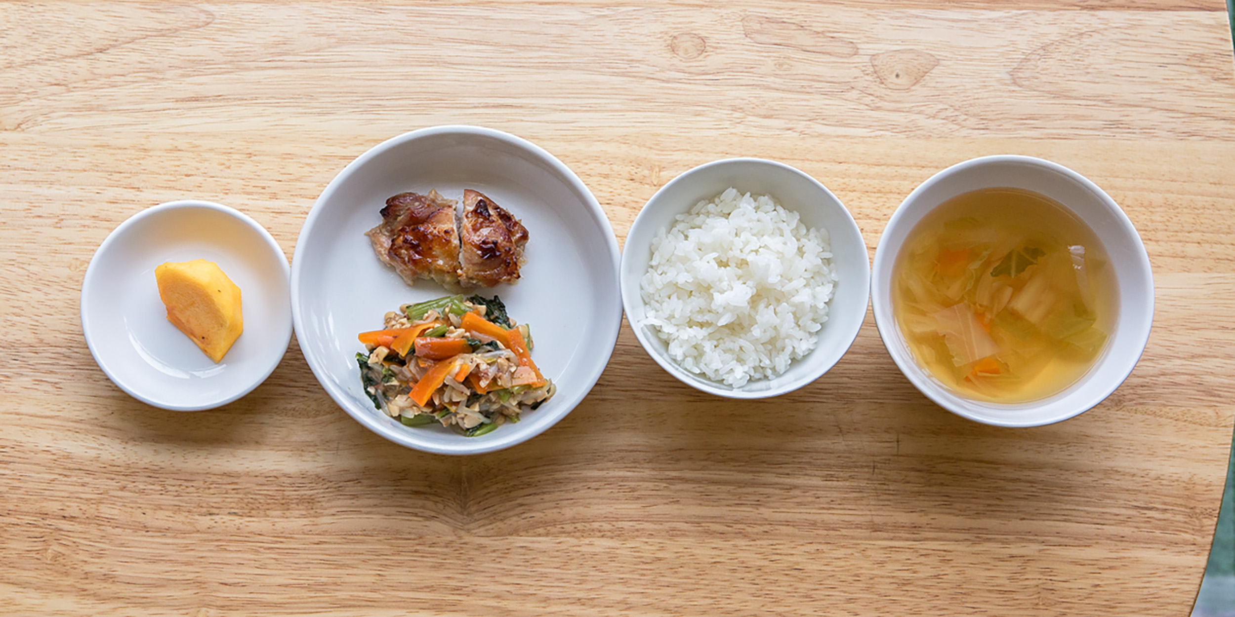 - 旬の食材を使い、素材本来の味を活かした和食中心の献立です。おひるごはんやおやつは園内で手作りし、季節を感じられる行事食も取り入れています。